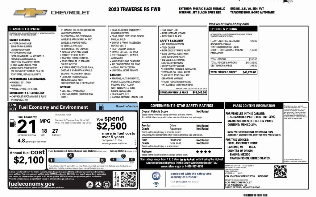 We lost our much-loved 2013 Chevrolet Traverse to a head-on with a drunk driver (his speed 60+mph, ours 45mph). My wife, myself, and our three littlest children (youngest was 6 months at the time), all walked away without a broken bone. Our second similar vehicle, a Buick Enclave, proved to be just as safe as the Traverse when we got rear-ended by a moving truck at 60mph on an LA freeway. Without hesitation, we got a new Traverse with this new one proving to be everything we liked about our original one with the benefit of better gas mileage (easily gets 30 mpg) and handling. Now at 81,000 trouble-free miles, we could not be happier with our decision. Our full list of maintenance & repairs include: 1. Oil changes 2. New tires 3. Transmission fluid change 4. 1 headlight bulb No tune-up (due at 100k), no brake pad replacements, or repairs. Considering the vehicle is driven on I-405 during rush hour traffic every weekday, hauls around 5 kids, has had multiple long haul road trips, and is often being treated like a sports car when entering the highway, we could not be happier. Unless someone hits this one, we hope to keep it until they make a fully electric version.