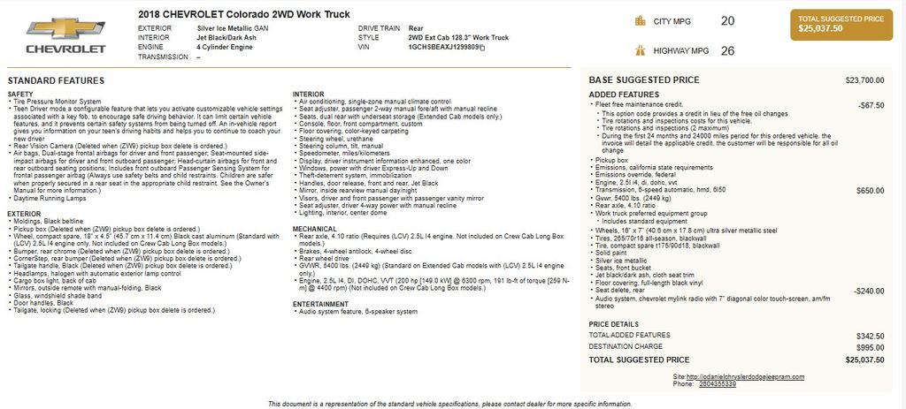Discover the versatile 2018 Chevrolet Colorado Work Truck, a rugged and capable pickup that's ready to tackle any job. With its powerful 2.5L I4 engine, 6-speed automatic transmission, and rear-wheel drive, this Colorado delivers impressive performance and efficiency, earning an EPA-estimated 20 city/26 highway MPG.