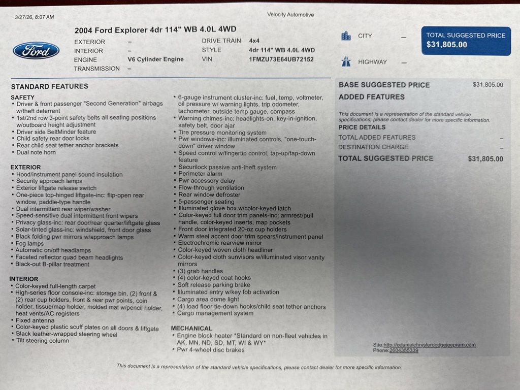 Discover the perfect blend of power, capability, and versatility with this 2004 Ford Explorer XLT. This well-maintained SUV is ready to take on any adventure, whether you're navigating the city streets or exploring the great outdoors.