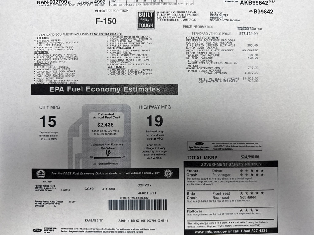 - Fuel economy city: 15mpg