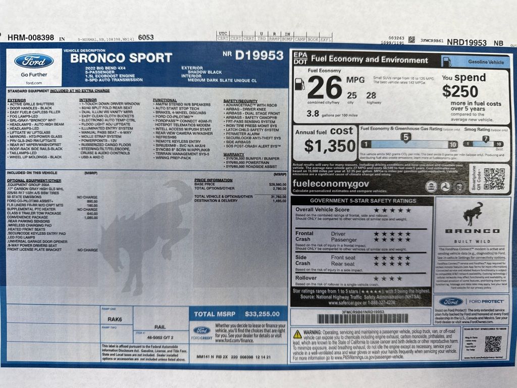 We're confident that the 2022 Ford Bronco Sport Big Bend will exceed your expectations. With its impressive performance, advanced technology, and premium features, this SUV is the perfect choice for those who demand the best. Experience the difference for yourself and schedule a test drive today. We look forward to helping you find the perfect vehicle to suit your needs and lifestyle.