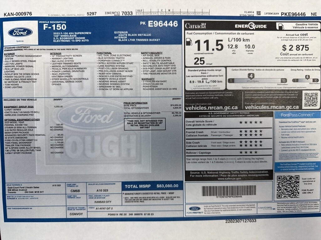 2023 Ford F-150 Lariat Agate Black Metallic 4WD 2.7L V6 EcoBoost