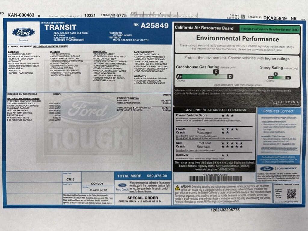 2024 Ford Transit-350 XLT Oxford White RWD 3.5L V6 Flex Fuel
