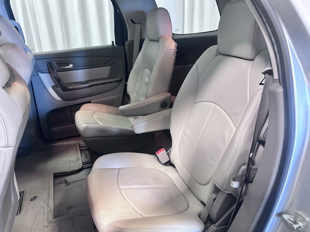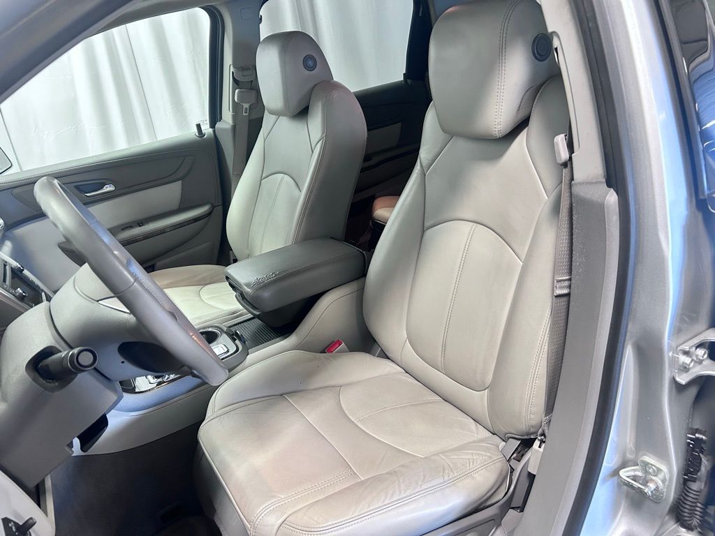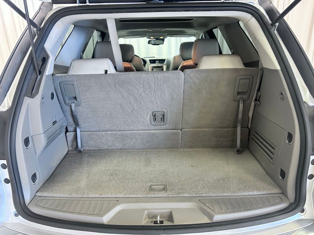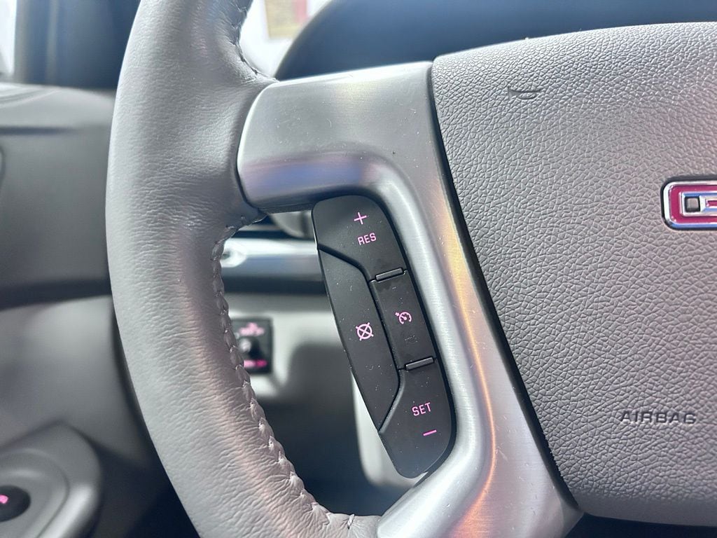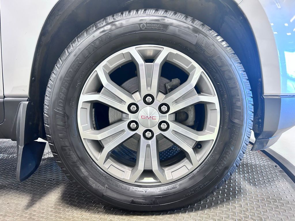 Beneath the sleek silver exterior, the Acadia's 3.6L V6 SIDI engine delivers a smooth and responsive performance, with an impressive fuel efficiency of 17 city and 24 highway MPG. This SUV's spacious interior and versatile seating configuration make it an ideal choice for families and adventurers alike.