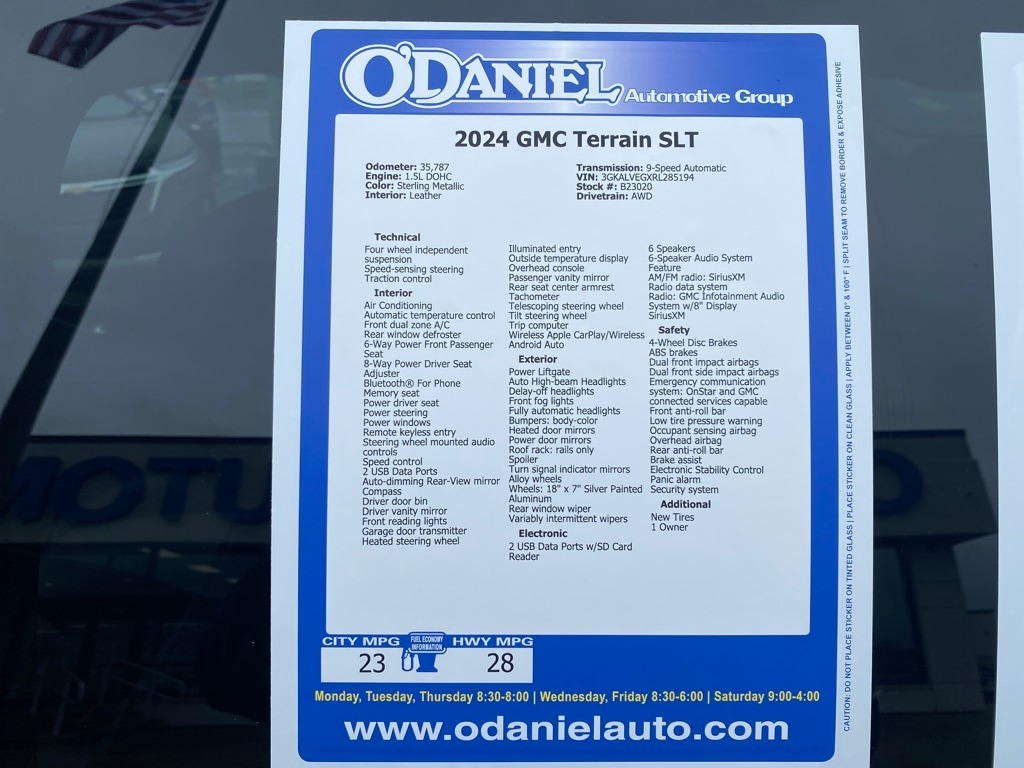 Priced below KBB Fair Purchase Price! New Tires, 1 Owner, Terrain SLT, AWD, 2 USB Data Ports, 2 USB Data Ports w/SD Card Reader, 6-Speaker Audio System Feature, 8-Way Power Driver Seat Adjuster, Auto High-beam Headlights, Bluetooth® For Phone, Heated front seats, Heated steering wheel, Memory seat, Perforated Leather-Appointed Seat Trim, Power Liftgate, Preferred Equipment Group 4SA, Radio: GMC Infotainment Audio System w/8" Display, SiriusXM, Wheels: 18" x 7" Silver Painted Aluminum, Wireless Apple CarPlay/Wireless Android Auto.