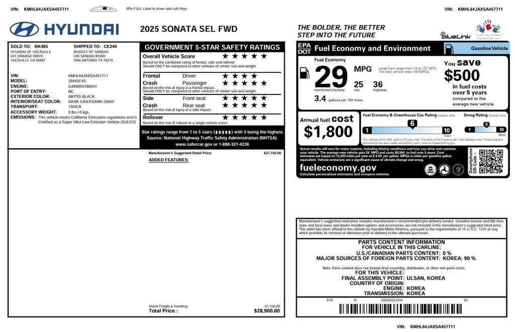 Certified by our rigorous inspection process, this 2025 Hyundai Sonata SEL is a true testament to the brand's commitment to quality and customer satisfaction. With its exceptional value, advanced technology, and refined driving dynamics, this Sonata is poised to exceed your expectations and provide you with an unparalleled ownership experience.