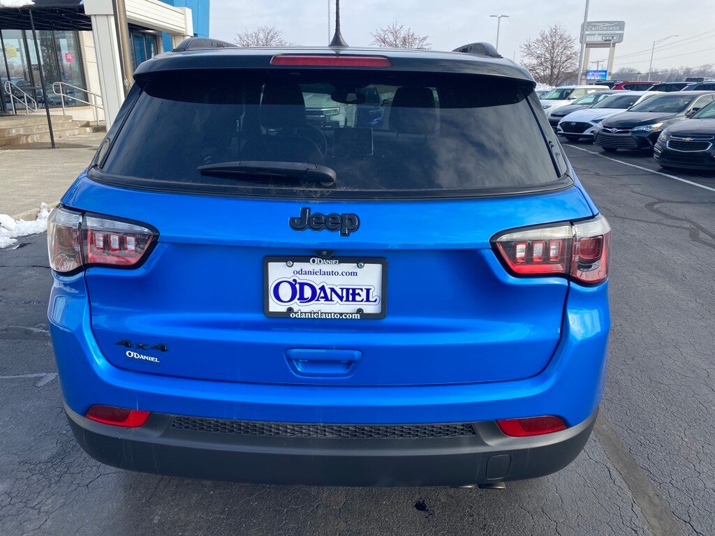 1 Owner / Local Trade in, Compass Altitude, 2.4L I4, 4WD, 115V Auxiliary Power Outlet, 2nd Row USB Type A/C Charge Only, Air Conditioning ATC w/Dual Zone Control, All-Season Floor Mats, Altitude Special Edition, Auto High-beam Headlights, Auto-Dimming Rear-View Mirror, Black Day Light Opening Moldings, Black Headliner, Black Roof, Bright Exhaust Tip, Convenience Group, Foot Activated Open 'N Go Liftgate, Gloss Black Badges, Gloss Black Grille & Crosshairs, Gloss Black Lower Rear Fascia Valance, Heated Front Seats, Heated Steering Wheel, Humidity Sensor, Leather Wrapped Steering Wheel, Light Tungsten Interior Accent Stitching, ParkView Rear Back-Up Camera, Piano Black Interior Accents, Power Adjust 8-Way Driver Seat, Power Liftgate, Quick Order Package 2GB Altitude, Remote Start System, Reversible Carpet/Vinyl Cargo Mat, Security Alarm, Universal Garage Door Opener, Vehicle Information Center, Wheels: 18" x 7" Gloss Black Painted Aluminum, Windshield Wiper De-Icer.