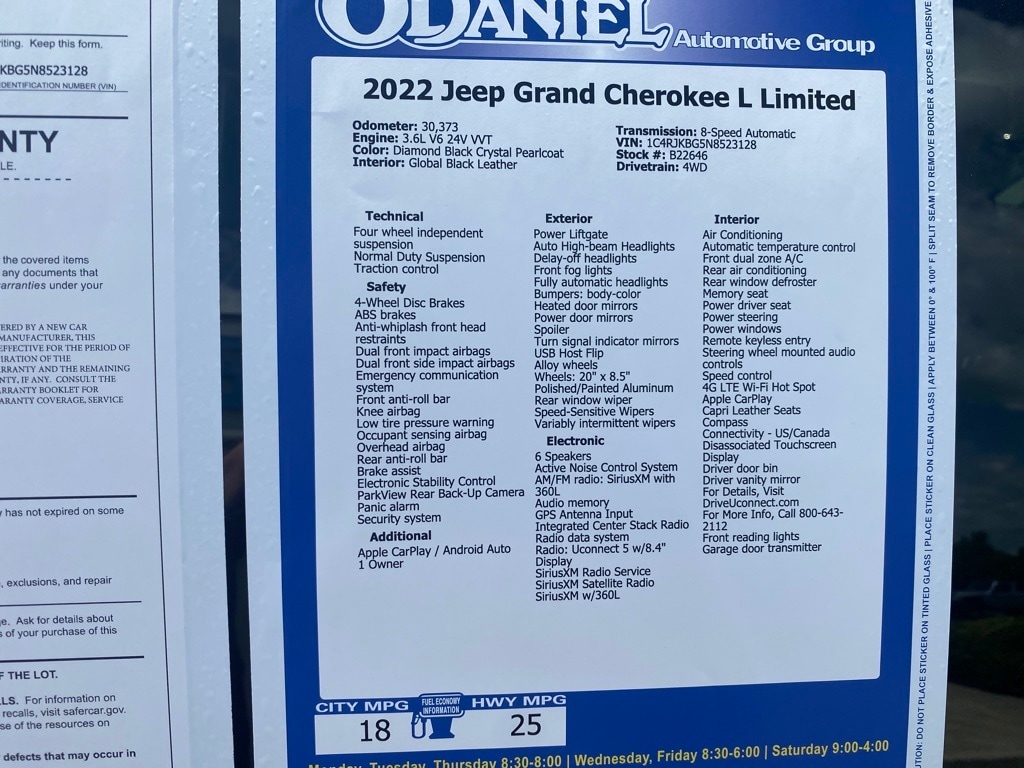 Priced below KBB Fair Purchase Price! Apple CarPlay / Android Auto, 1 Owner, Grand Cherokee L Limited, 4WD, Auto High-beam Headlights, Capri Leather Seats, Heated front seats, Heated rear seats, Heated steering wheel, Memory seat, ParkView Rear Back-Up Camera, Power driver seat, Power Liftgate, Quick Order Package 22E, Wheels: 20" x 8.5" Polished/Painted Aluminum.