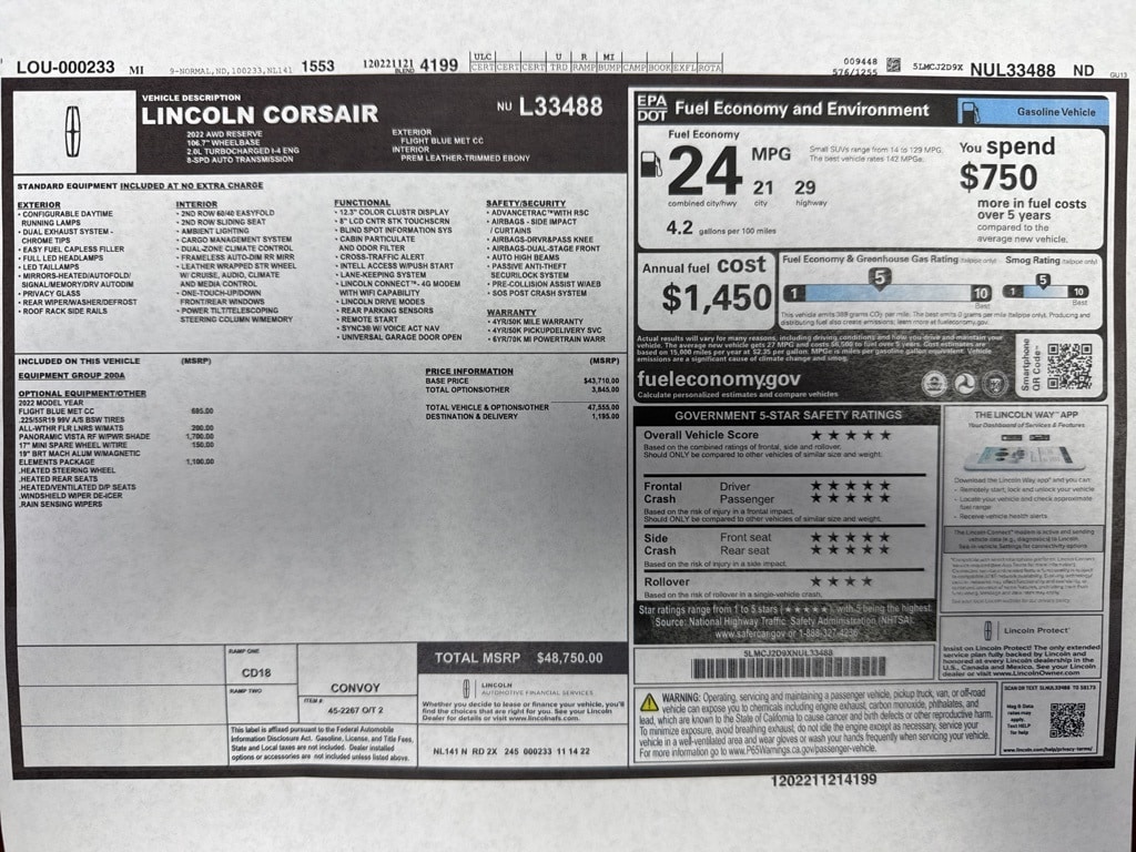 2022 Lincoln Corsair Reserve Flight Blue Metallic Clearcoat AWD 2.0L I4