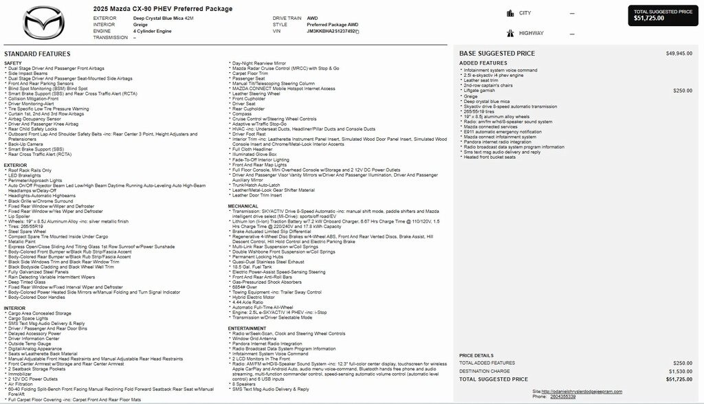 2025 Mazda CX-90 Phev Preferred