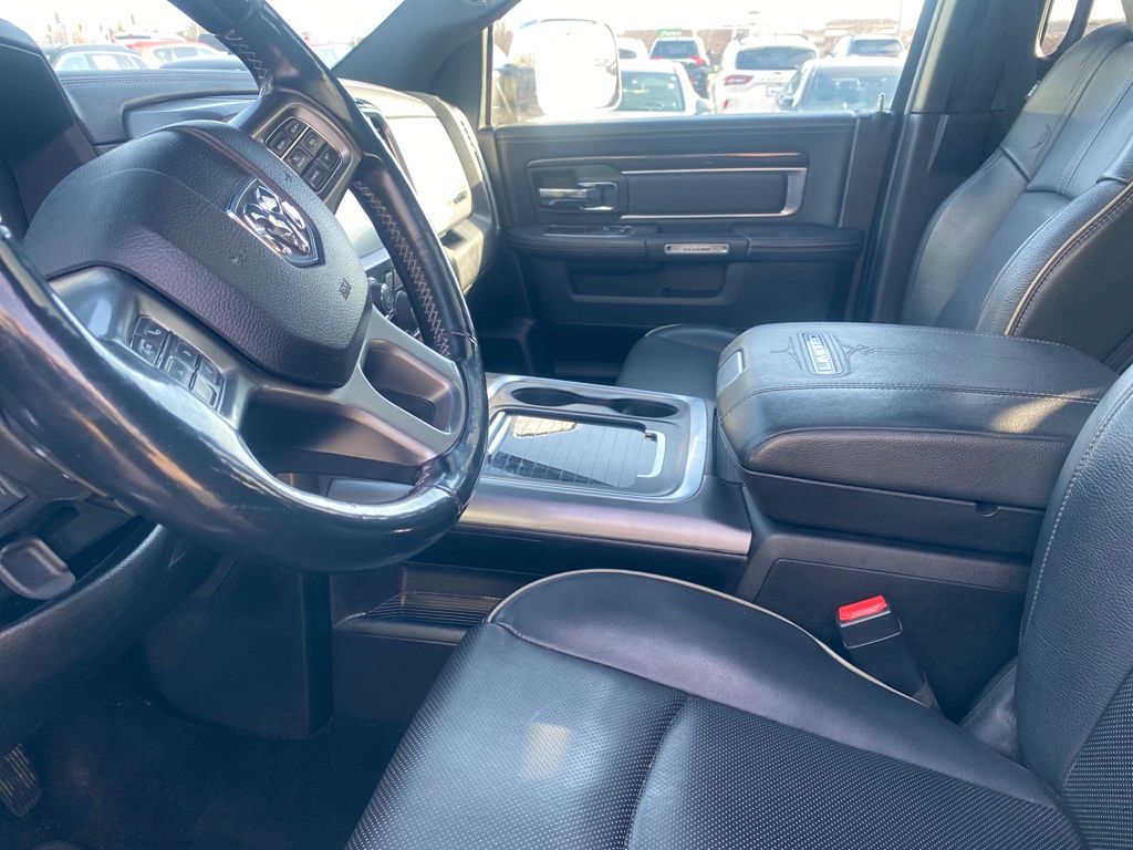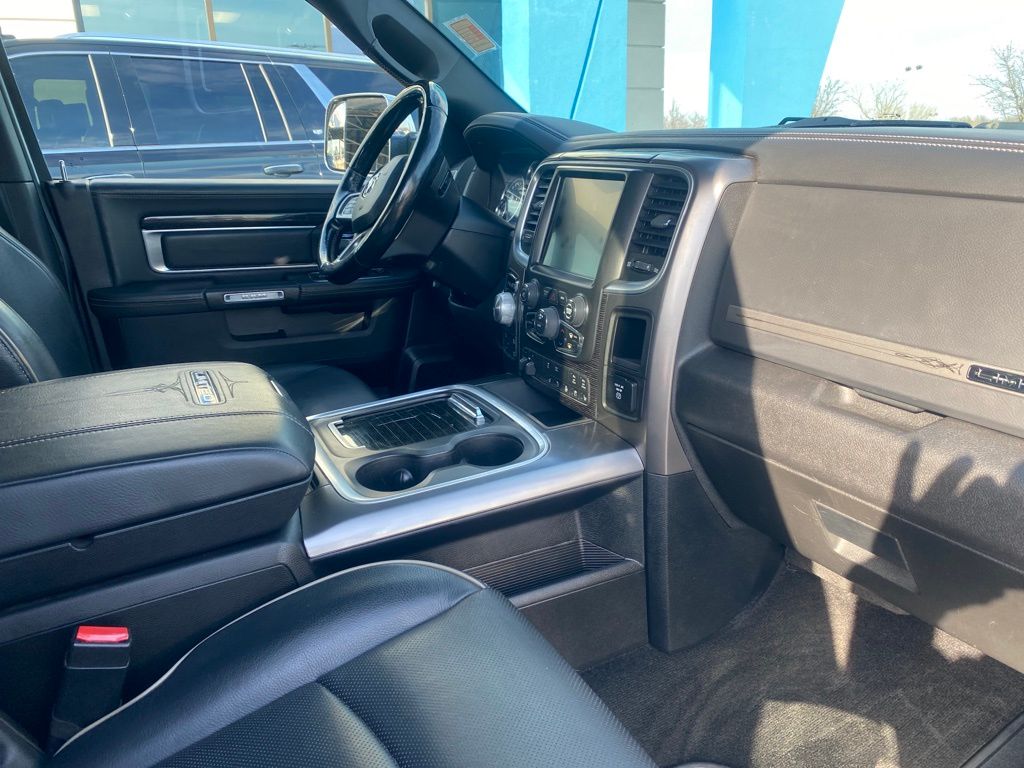 Local Trade in, 1500 Limited, 4D Crew Cab, HEMI 5.7L V8 Multi Displacement VVT, 4WD, 4-Corner Air Suspension, Black Closeout Trim, Body Color Rear Bumper w/Step Pads, Bucket Seats, Center Hub, Class IV Receiver Hitch, Folding Flat Load Floor Storage, Heated Front Seats, Heated Second Row Seats, Heated Steering Wheel, High Back Seats, Laramie Limited Group, Laramie Limited Leather Bucket Seats, Leather Wrapped Grab Handle, Luxury Door Trim Panel, Luxury Front & Rear Floor Mats, Memory seat, Navigation System, ParkView Rear Back-Up Camera, Power 10-Way Memory Driver & 6-Way Passenger Seats, Power Chrome Trailer Tow Mirrors, Power Sunroof, Quick Order Package 26V Limited, Rain sensing wipers, Ram 1500 Badge, Rear 60/40 Split Folding Seat, Rear Window Defroster, Steering Wheel Mounted Audio Controls, Trailer Brake Control, Trailer Tow Mirrors & Brake Group, Ventilated Front Seats, Wheel to Wheel Side Steps, Wheels: 20" x 9" Painted Aluminum Chrome Insert, Wood/Leather Wrapped Steering Wheel.