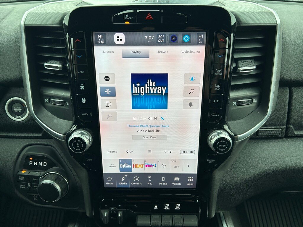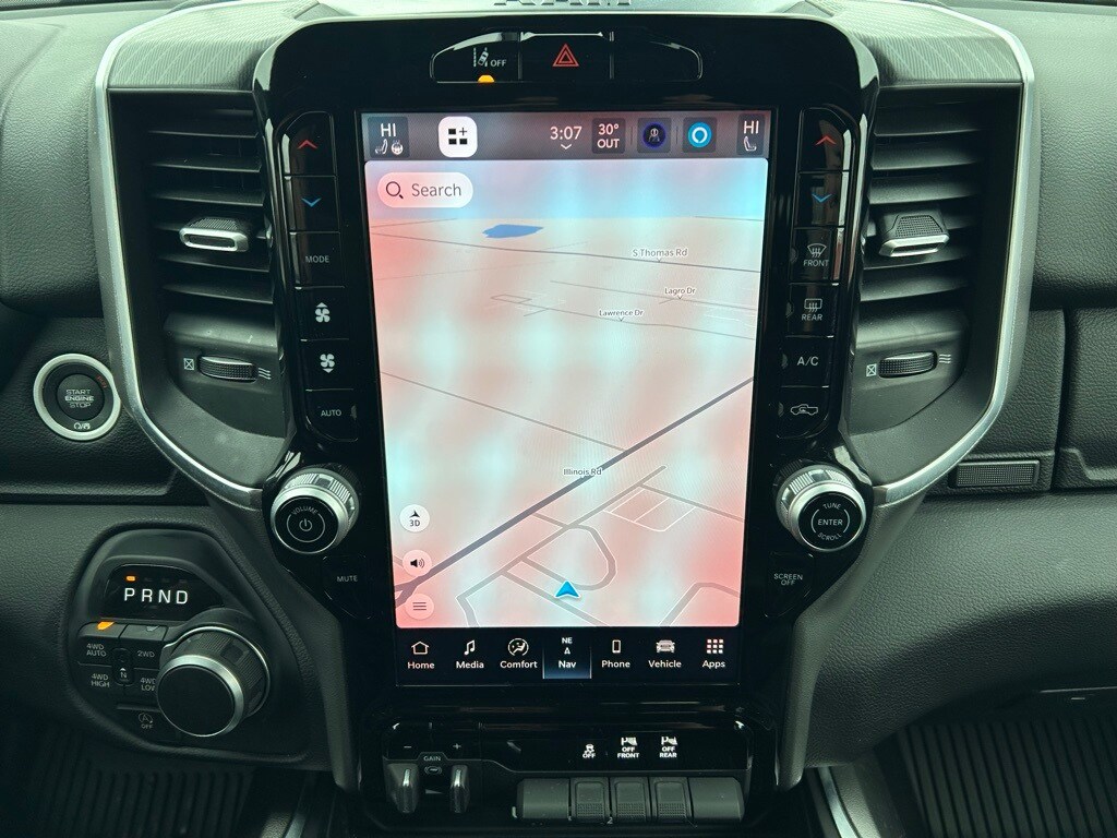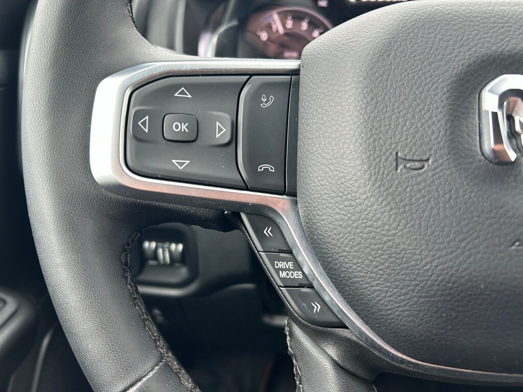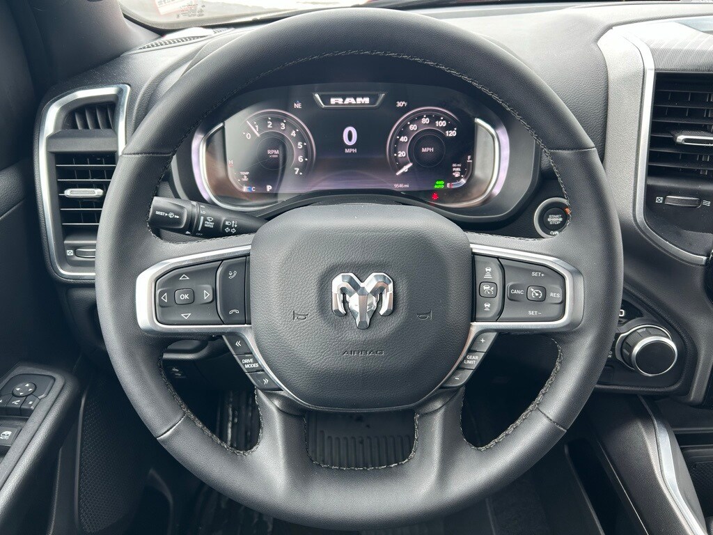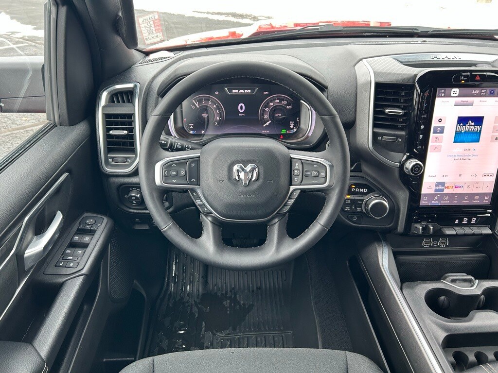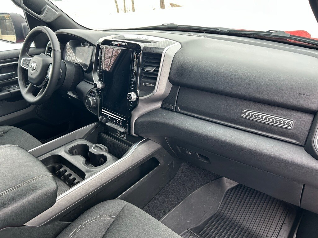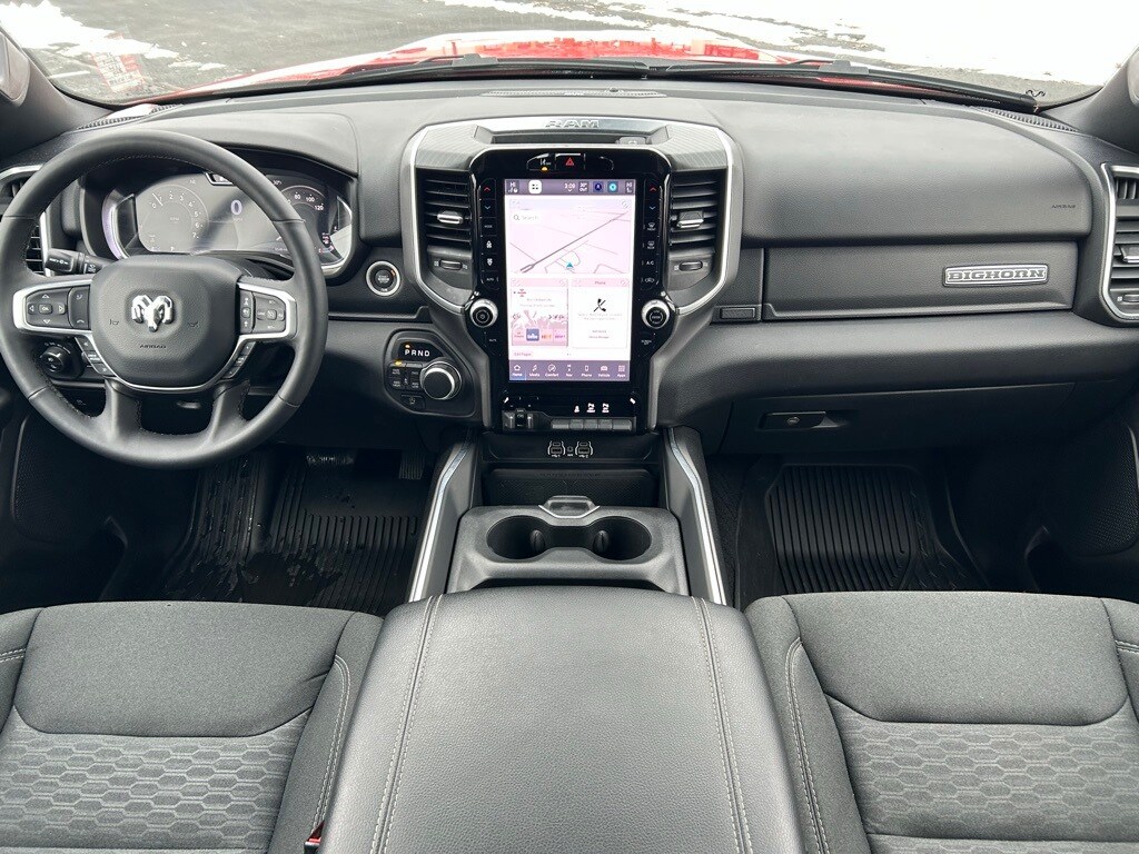 Navigation/GPS/Navi, Tinted Windows, Back-Up Camera!, Bluetooth/HandsFree, Ram1500 received J.D. Power’s Best Driver appeal for light duty pick ups three years in a row., Night Edition, Big Horn Level 2 Equipment Group, 115V Auxiliary Power Outlet, 115V Auxiliary Rear Power Outlet, 12" Touchscreen Display, 2nd Row In Floor Storage Bins, 3 Rear Seat Head Restraints, 4 Way Front Headrests, 400W Inverter, 4G LTE Wi-Fi Hot Spot, 9 Amplified Speakers w/Subwoofer, Accent Color Door Handles, Accent Color Premium Power Mirrors, Accent Color Tailgate Handle, Air Conditioning ATC w/Dual Zone Control, Anti-Spin Differential Rear Axle, Apple CarPlay, Auto Power-Folding Mirrors, Auto-Dimming Exterior Driver Mirror, Auto-Dimming Rear-View Mirror, Big Horn Badge, Big Horn Level 2 Equipment Group, Black Exterior Mirrors, Black Exterior Truck Badging, Black Headlamp Bezels, Black Interior Accents, Black Painted Exterior Mirrors Caps, Black Premium Power Mirrors, Black Tail Lamp Bezels, Body Color Front Bumper, Body Color Rear Bumper w/Step Pads, Bucket Seats, Cluster 7.0" TFT Color Display, Configurable Drive Mode, Connected Travel & Traffic Services, Connectivity - US/Canada, Convex Wide-Angle Exterior Mirror Insert, Deluxe Cloth Bucket Seats, Exterior Mirrors Courtesy Lamps, Exterior Mirrors w/Heating Element, Exterior Mirrors w/Supplemental Signals, Front Seat Back Map Pockets, Full Length Floor Console, Glove Box Lamp, Google Android Auto, GPS Antenna Input, GPS Navigation, Grille Black Surround Black Mesh, HD Radio, Heated Front Seats, Heated Steering Wheel, Integrated Voice Command w/Bluetooth, Leather Wrapped Steering Wheel, LED Dome Lamp w/On/Off Switch, LED Footwell Lighting, Manual Adjust 4-Way Front Passenger Seat, Media Hub w/2 Charge Only USBs, Night Edition, Overhead LED Lamps, ParkView Rear Back-Up Camera, Power 2-Way Driver Lumbar Adjust, Power Adjust 8-Way Driver Seat, Power Adjustable Pedals, Premium Overhead Console, Quick Order Package 23Z Big Horn, Radio: Uconnect 5 Nav w/12.0" Display, RAM Grille Badge - Black, Rear 60/40 Folding Seat, Rear Center Armrest, Rear Power Sliding Window, Rear Window Defroster, Remote Tailgate Release, Security Alarm, SiriusXM w/360L, Steering Wheel Mounted Audio Controls, Sun Visors w/Illuminated Vanity Mirrors, Universal Garage Door Opener, USB Host Flip, Wheels: 20" x 9.0" Aluminum Painted Clad.