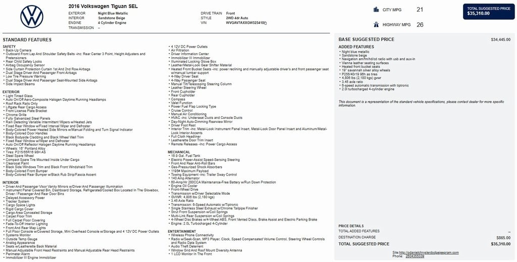 Local Trade in, Tiguan SEL, FWD, Alloy wheels, Exterior Parking Camera Rear, Fully automatic headlights, Heated front seats, Power driver seat, Rain sensing wipers, Vienna Leather Seating Surfaces.